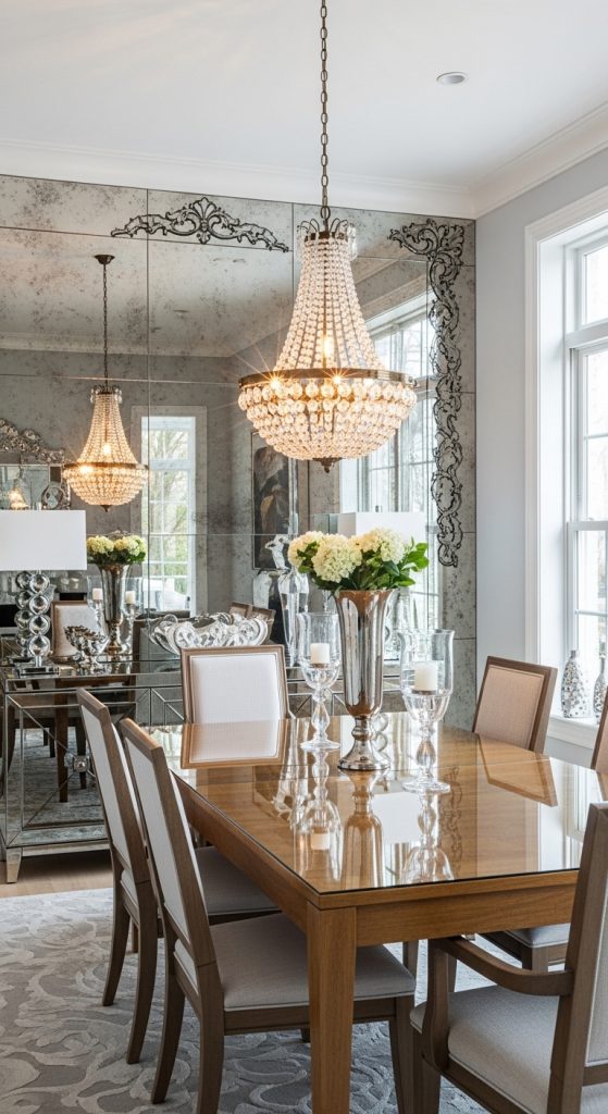 Mirrors not only look elegant but also make your dining room appear larger and brighter.